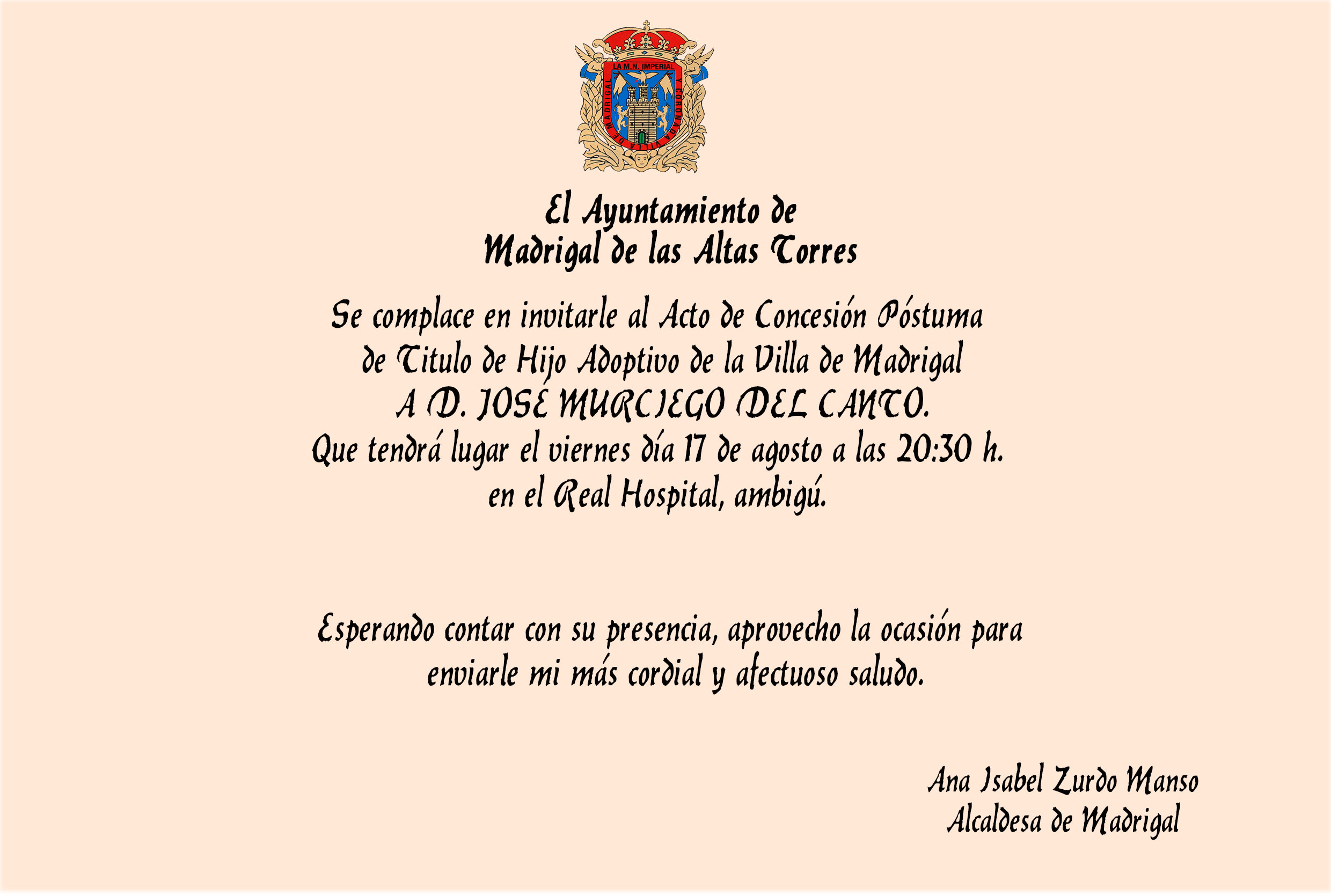 Concesión póstuma de título de Hijo Adoptivo de Madrigal a D. Jose Murciego del Canto