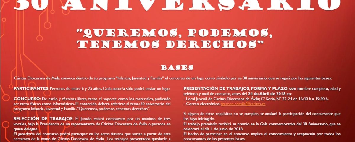 Concurso Logo 30 Aniversario Cáritas Diocesana de Ávila
