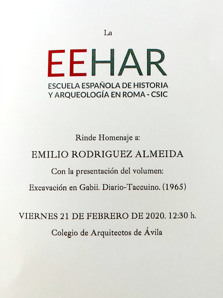 Homenaje a Emilio Rodriguez Almedia, presentación “Excavación en Gabii. Diario-Taccuino. (1965)”