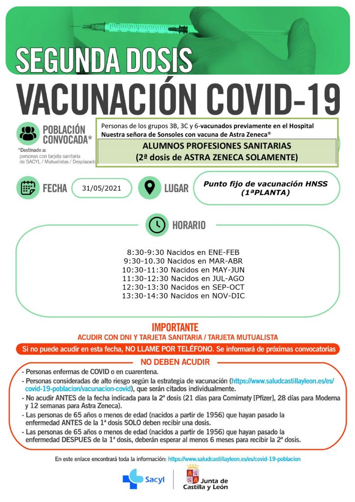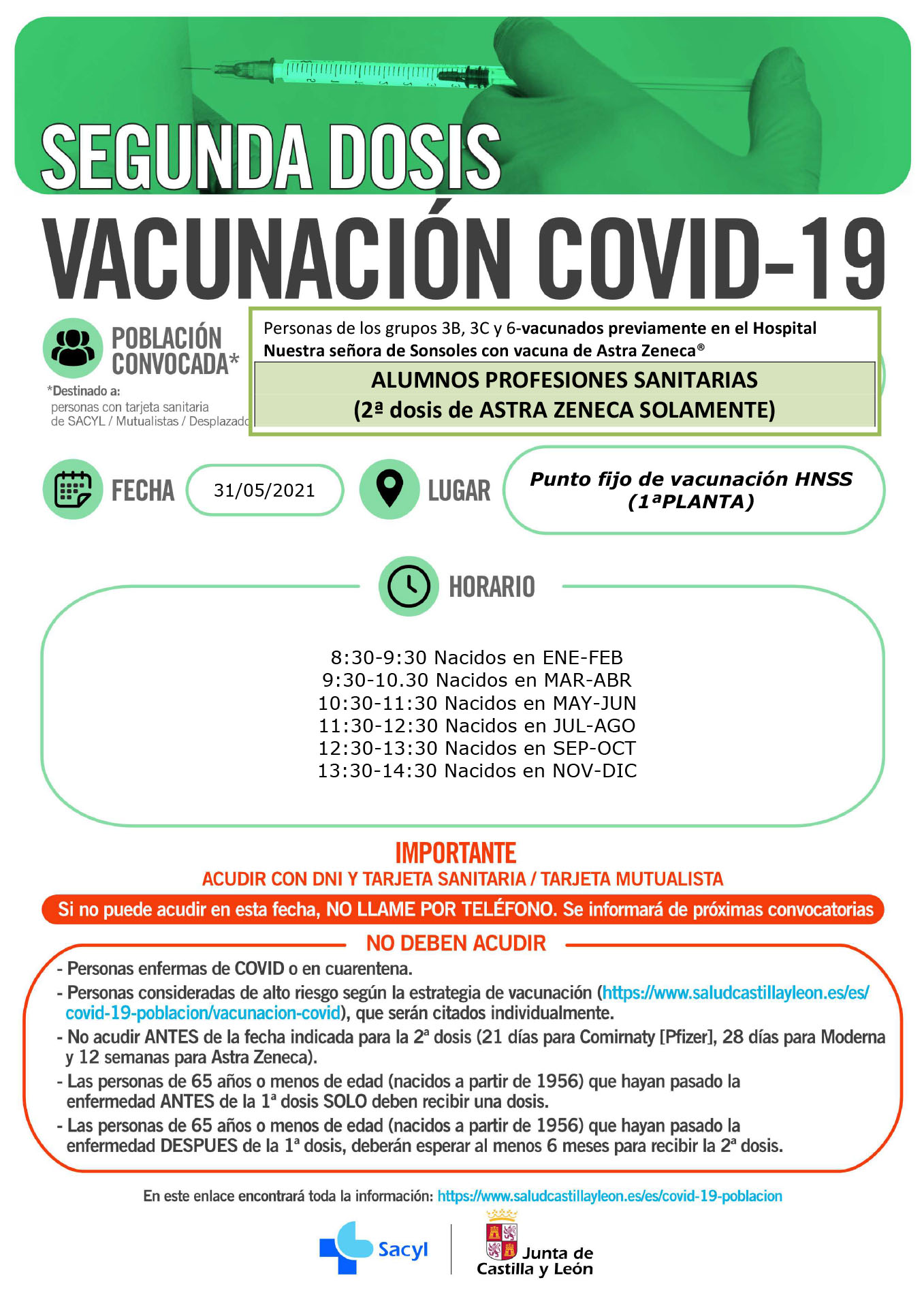 Vacunación COVID-19 (Segundas Dosis): Alumnos de Profesiones Sanitarias (Astra Zeneca) Avila, 31 de mayo